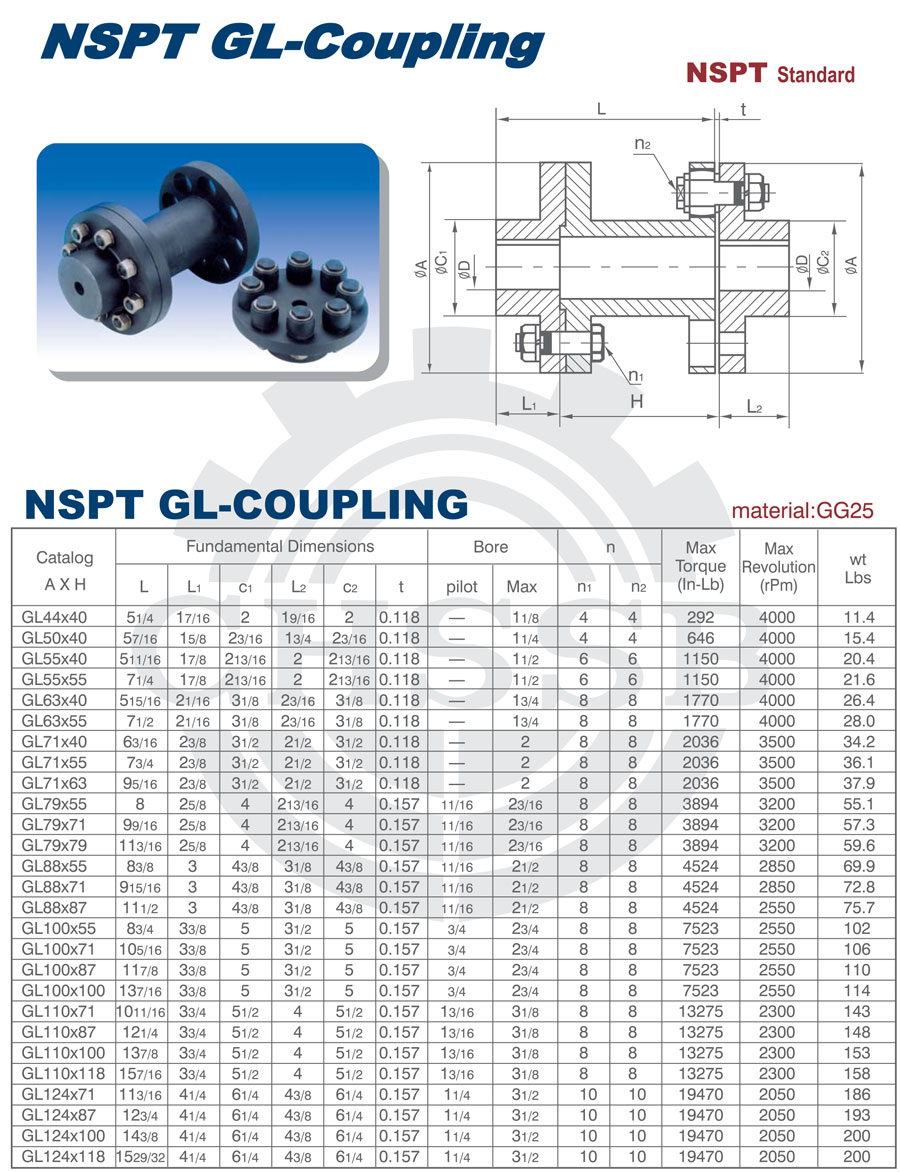 產(chǎn)品范圍: 美標/歐標:(GL44-GL124) 英制尺寸產(chǎn)品(適用于美標市場) 公制尺寸產(chǎn)品(適用于歐標市場) GL型聯(lián)軸器