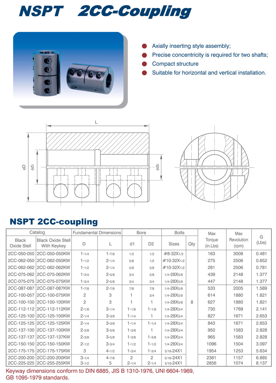 產(chǎn)品范圍: 美標(biāo):(2CC) 英制尺寸產(chǎn)品(適用于美標(biāo)市場(chǎng)) 2CC聯(lián)軸器